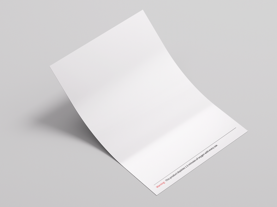 This project was made in response to excessive paper consumption in educational settings. It leverages the monetary value of paper in terms of minutes of life/breaths a person takes during a day. Through copy-led warning labels on paper products this project aims to spark critical conversations around the real value of commodities around us fostering responsible consumption.